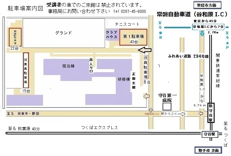 ☆空から見る(ストリュートビュー) 🚙 谷和原IC (常磐自動車道)から守谷総合研修センターへ 7分 🚙 【谷和原IC 】 出口を右:守谷・取手方面(0.7km)→【新守谷駅前 】 交差点を右折 2km直進→ 【 市営住宅入口 】 交差点 損保ジャパン研修センター